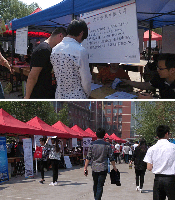 4月25日上午9時,我單位參加了石家莊信息工程學院北校區的大型招聘會,主要是針對校園內的13級的應屆畢業生。隨著就業形勢的越來越緊張,就業難也成為了應屆畢業生將要面對的人生最大的問題了,所以今天招聘會的氣氛非常的好,每一個應聘者的手中都拿著簡歷,在人群中不斷的尋找適合自己的工作和用人單位的情況。而且大二的許多老師都開始咨詢傳媒專業和廣告制作專業的學生對口的企業,在找人的時候都有那些要求,為每一個學生的將來來回的奔波和咨詢。