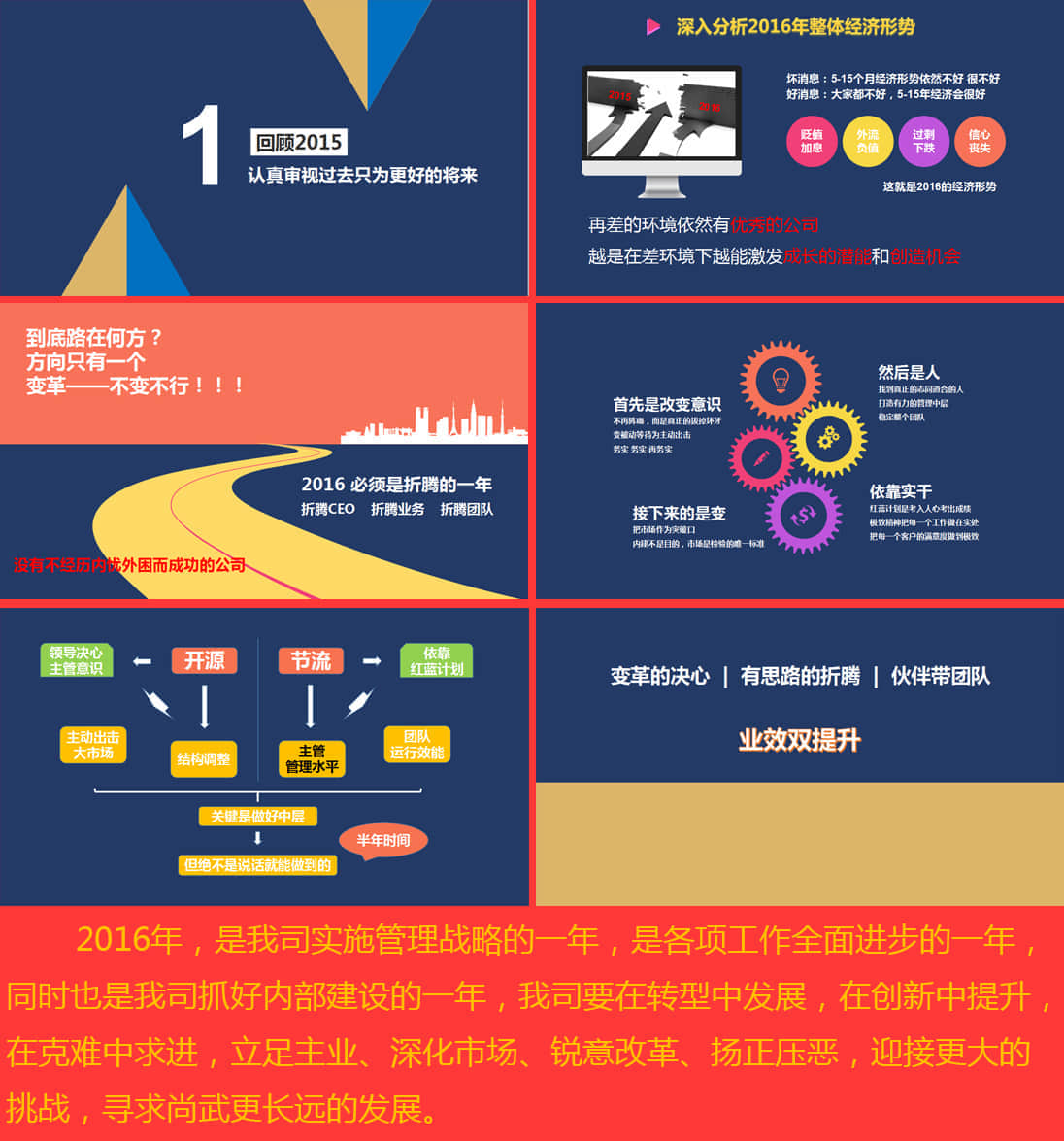 在此次述職中,市場部門分析2016年整體經(jīng)濟形勢和公司走過十年創(chuàng)業(yè)路所經(jīng)歷的困難和面臨的考驗。提出首要改變被動等待為主動出擊市場的思維模式。做出改變:因改變才能贏得客戶。
